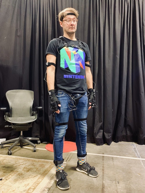 Rehearsing some realtime Spidey moves in a MoCap suit at Disney Imagineering, Glendale, California.